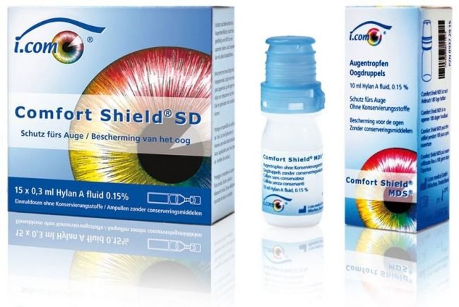 Thanks to the particularly high-quality and long-chain hyaluronic acid Hylan A, Comfort Shield® not only ensures that the dry eye is permanently moisturised, but also protects the eye surface in a unique way. Accompanying symptoms of dry eye such as itching, burning, stinging, redness and inflammation can thus subside more quickly. A clinical study demonstrates that Comfort Shield® can even contribute to the regeneration of damaged nerve cells in the cornea.